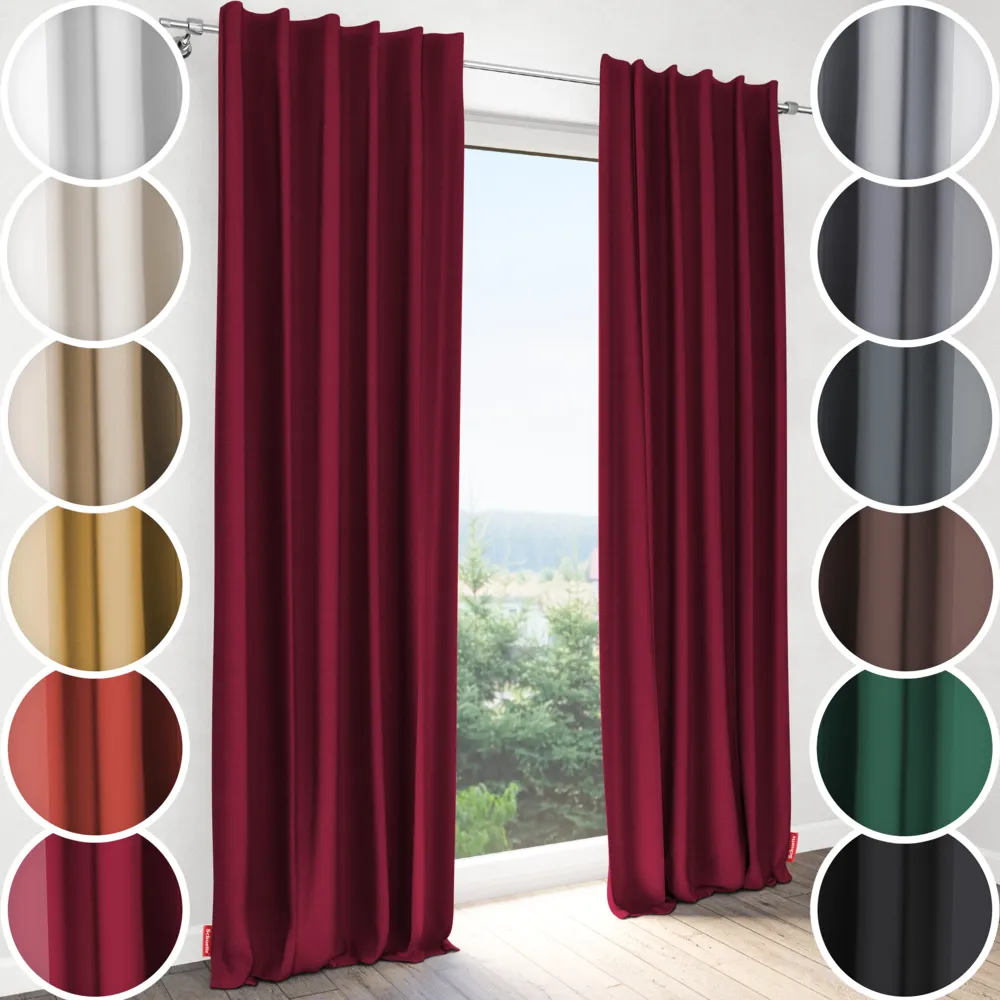 - Features Schuette® blackout curtain with tunnel tape: Extremely darkening and absolutely opaque blackout curtain scarf; High light protection & improved room acoustics (sound insulation & noise reduction); Energy-saving thermal effect (reduced heat and cold exchange at the window); Hand-sewn locally with the highest level of craftsmanship in our own family manufactory especially for you.