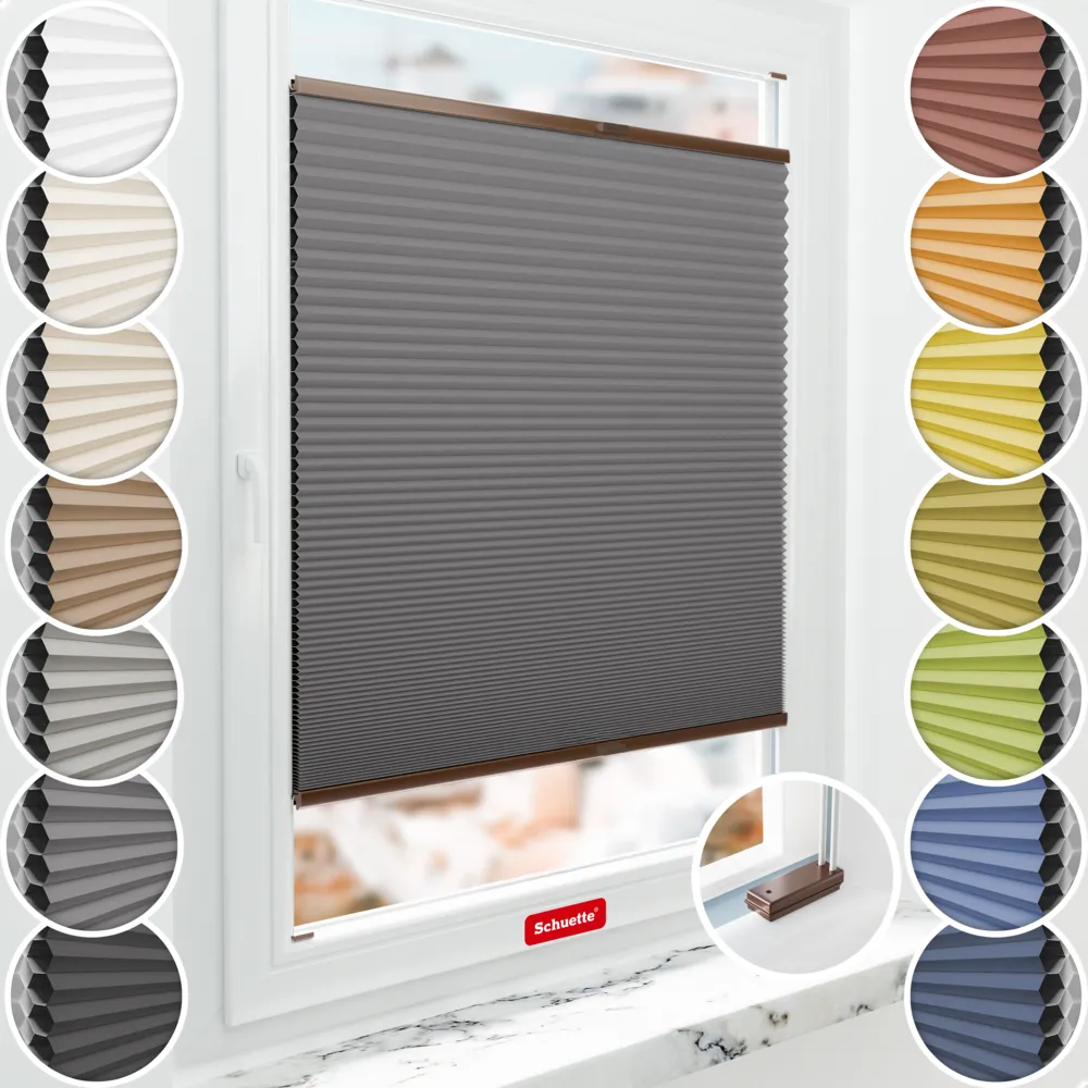 Schuette® Honeycomb Blackout Pleated Blind Made to Measure with Drilling • Blackout x Honey Collection: Twilight Tango (Gray) • Suprafix brackets "With drilling" • Profile: Brown