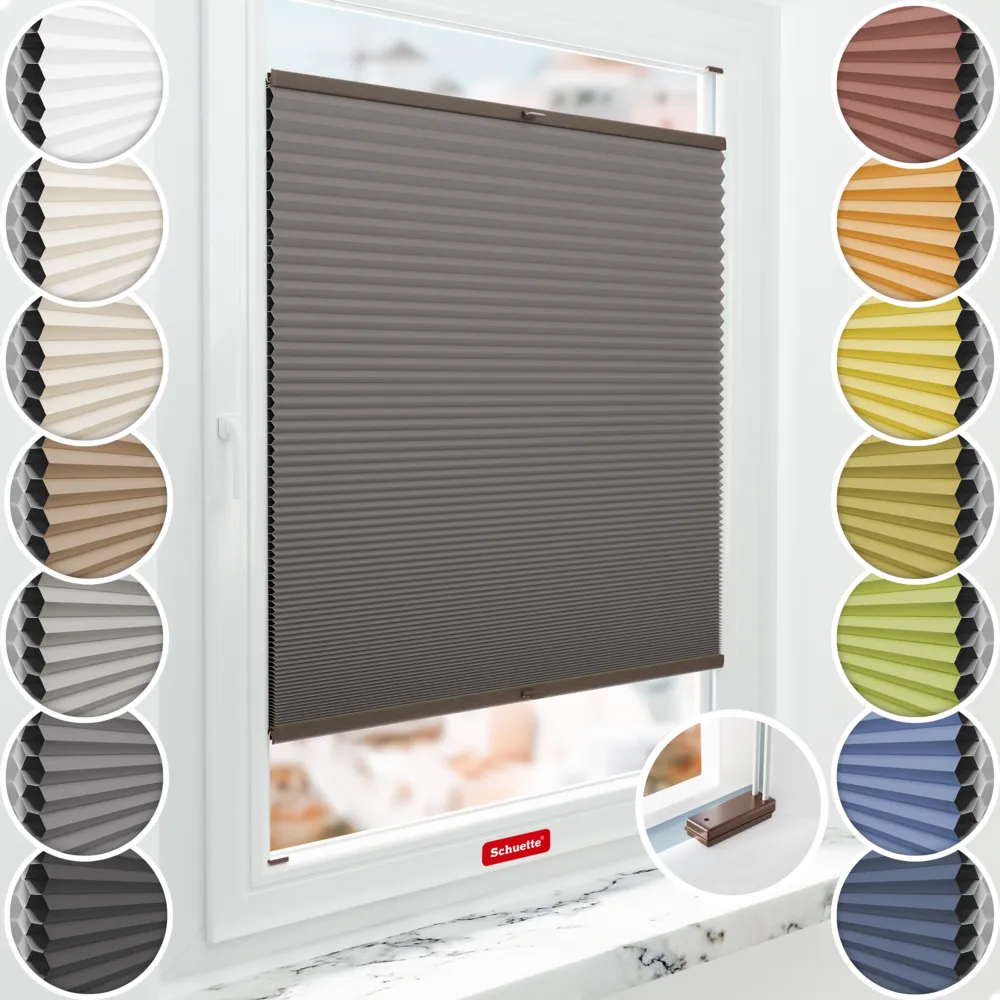 Schuette® Honeycomb Blackout Pleated Blind Made to Measure with Drilling • Blackout x Honey Collection: Swiss Chocolate (Taupe) • Suprafix brackets "With drilling" • Profile: Walnut