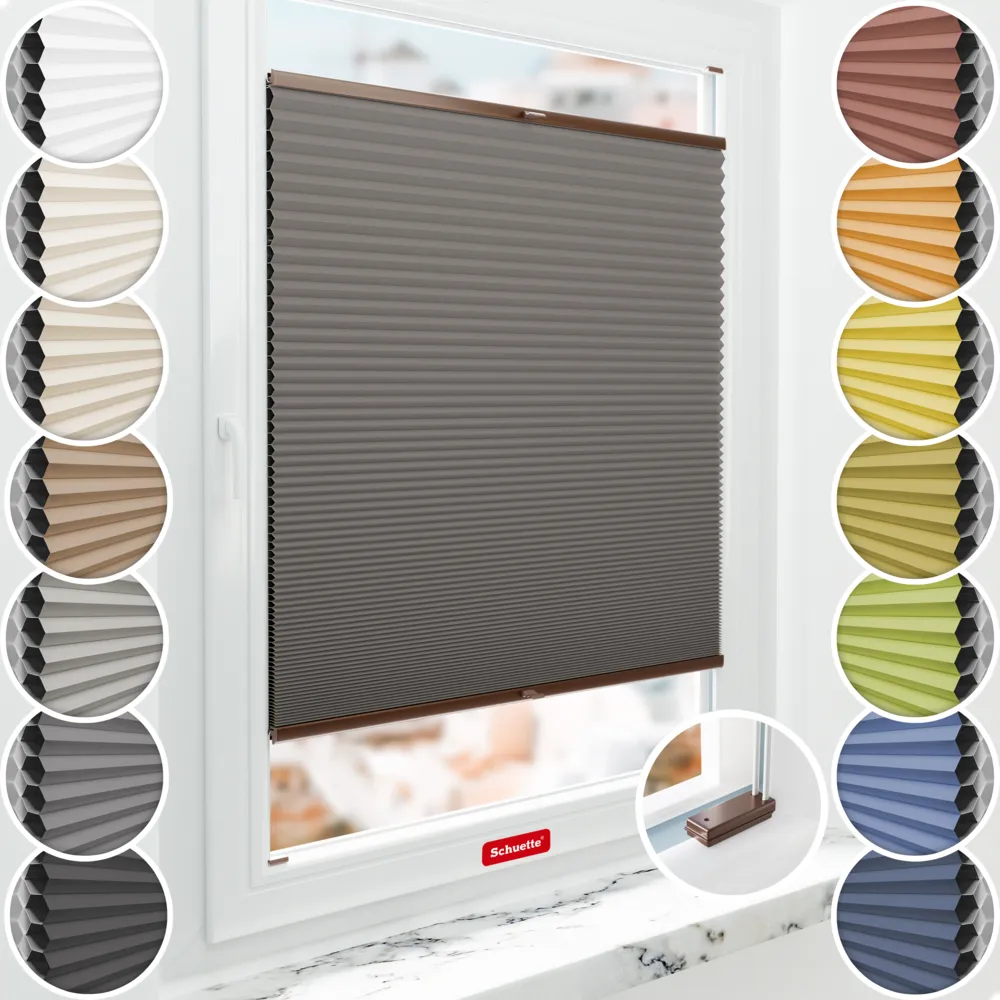 Schuette® Honeycomb Blackout Pleated Blind Made to Measure with Drilling • Blackout x Honey Collection: Swiss Chocolate (Taupe) • Suprafix brackets "With drilling" • Profile: Brown