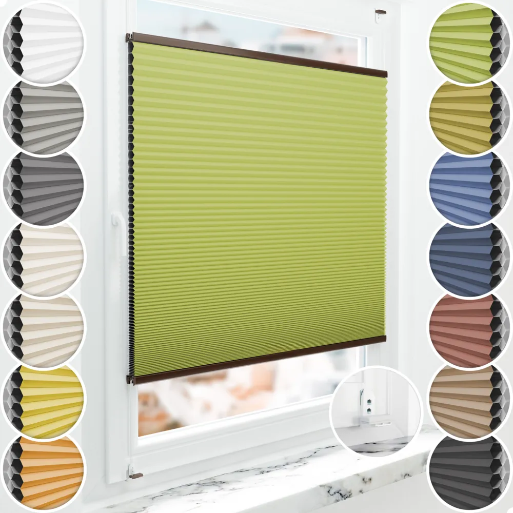 Schuette® Honeycomb Blackout Pleated Blind Made to Measure without Drilling • Blackout x Honey Collection: Green Tea (Green) • Suprafix Clamp Holder "Double 2in1" • Profile: Brown