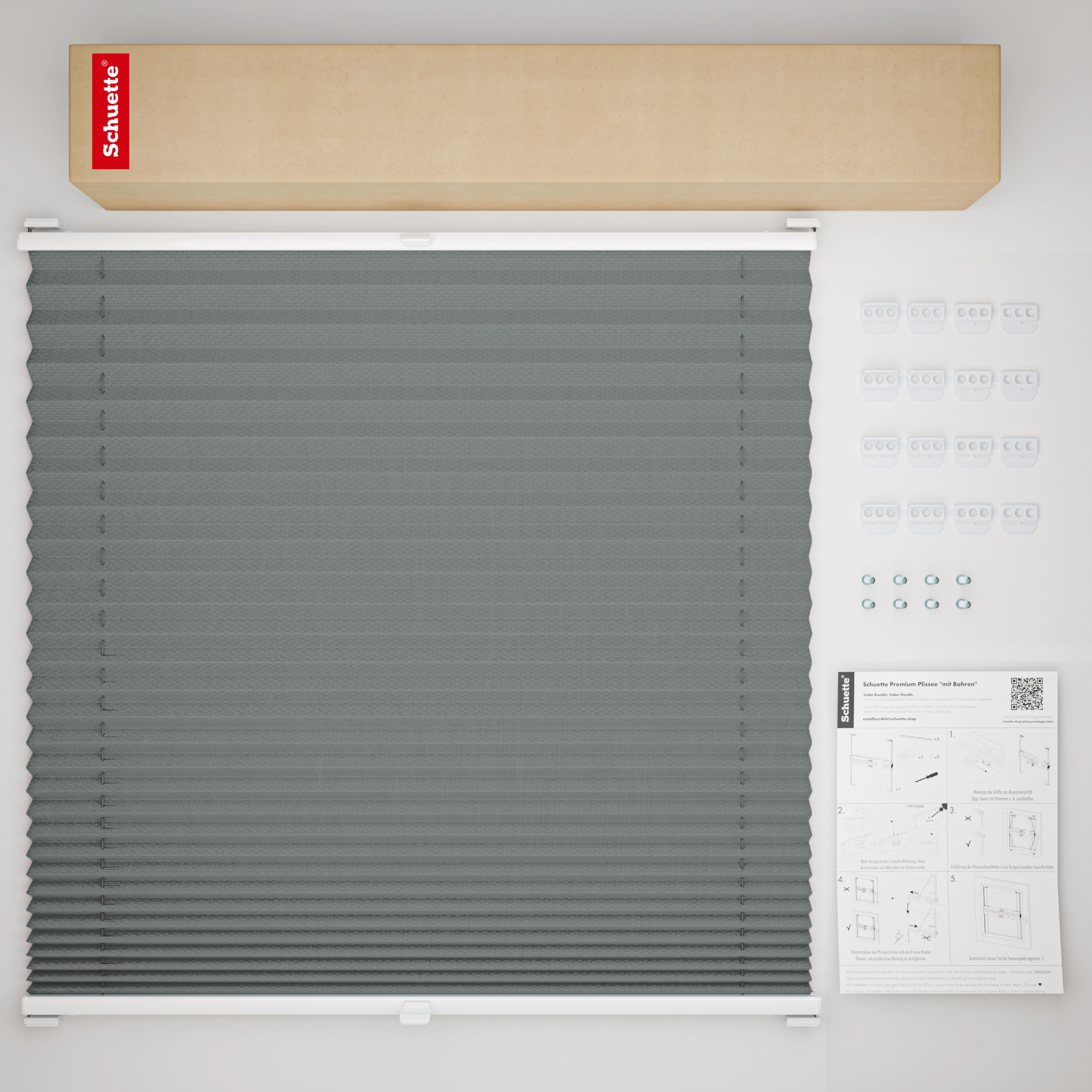 Schuette® Pleated Blind Made to Measure with Drilling • Suprafix Mounts “For screwing” • Premium Collection: Silver Frost (Grey) • Profilfarbe: Anthracite