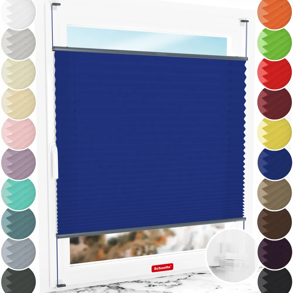 - Features Schuette® pleated blinds without drilling: Infinitely adjustable (Up&Down), double tensioned (NO swinging), special aluminum profiles (NO! bending/breaking), fully assembled as far as possible (NO! threading the pleated cord / NO! tedious assembly of many individual parts)