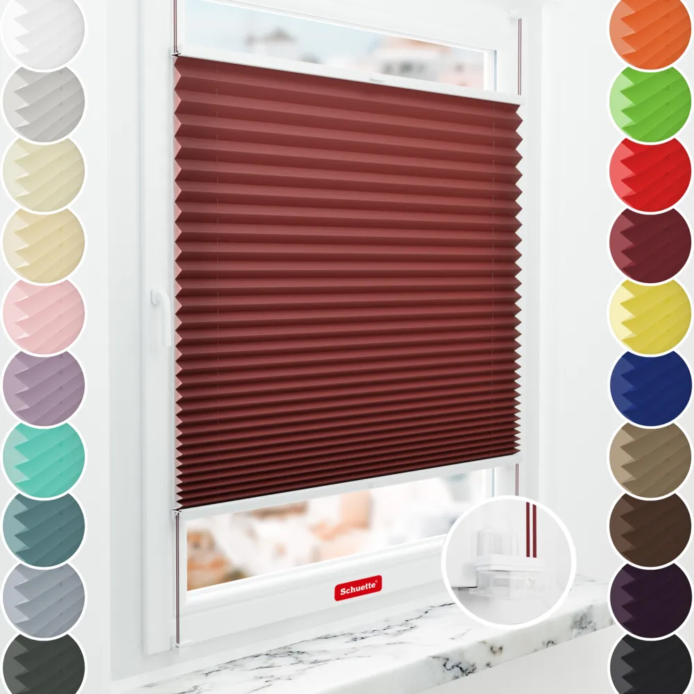 Schuette® Plissee mit Muster nach Maß • Limited Kollektion: Burning Desire (Rot) • Suprafix Halterungen “Mit Bohren” • Profilfarbe: Braun