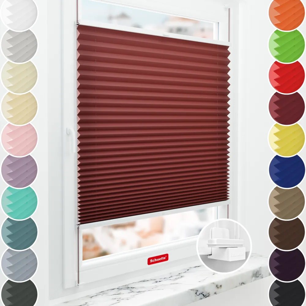Schuette® Plissee mit Muster nach Maß • Limited Kollektion: Burning Desire (Rot) • Suprafix Klemmhalter "X" • Profilfarbe: Braun