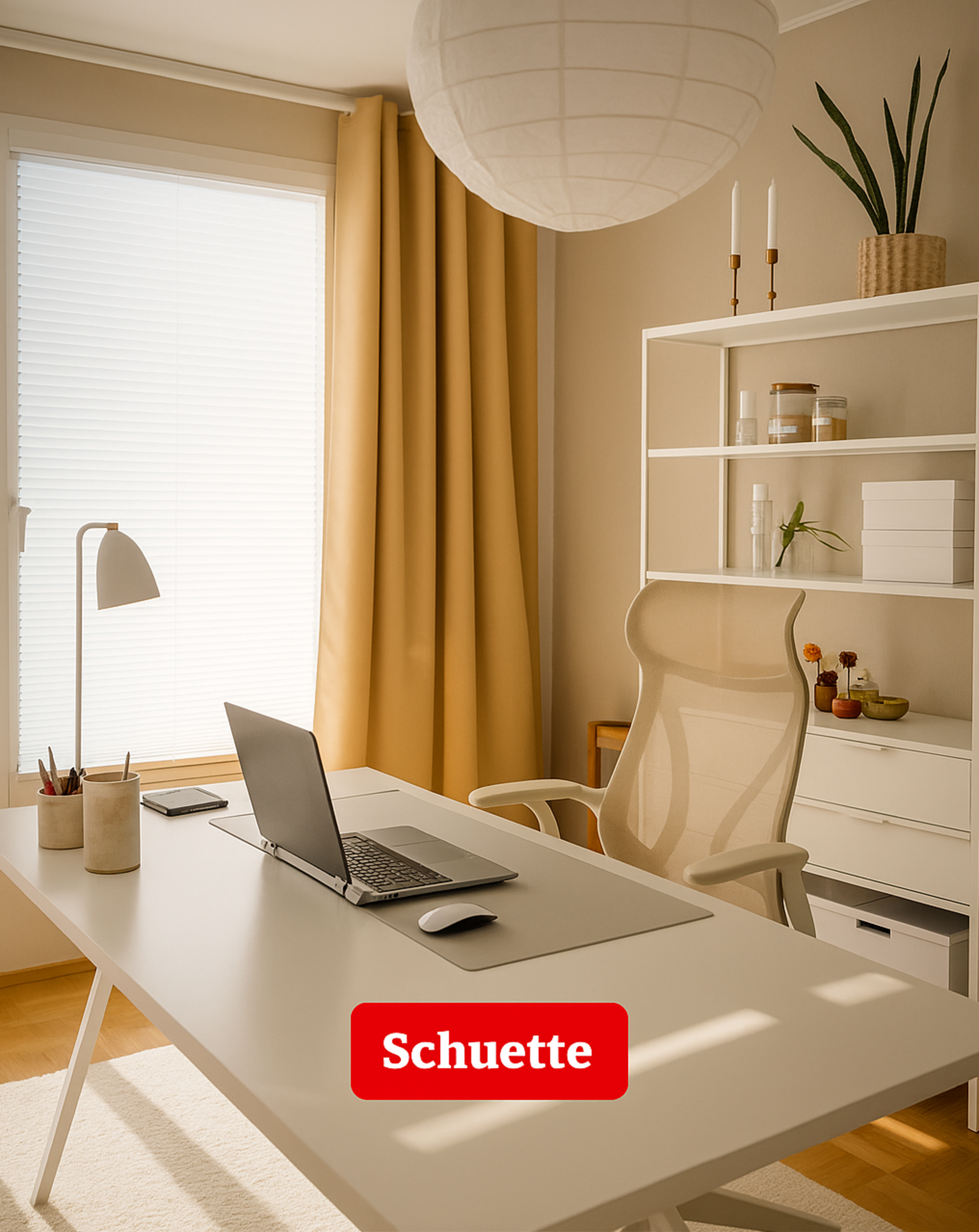 Para oficinas es preferible elegir opciones con mayor transmisión de luz, pero muchos creativos, como diseñadores gráficos o fotógrafos, pueden necesitar un mayor bloqueo de la luz y entonces se puede optar por estores opacos en color mantequilla.