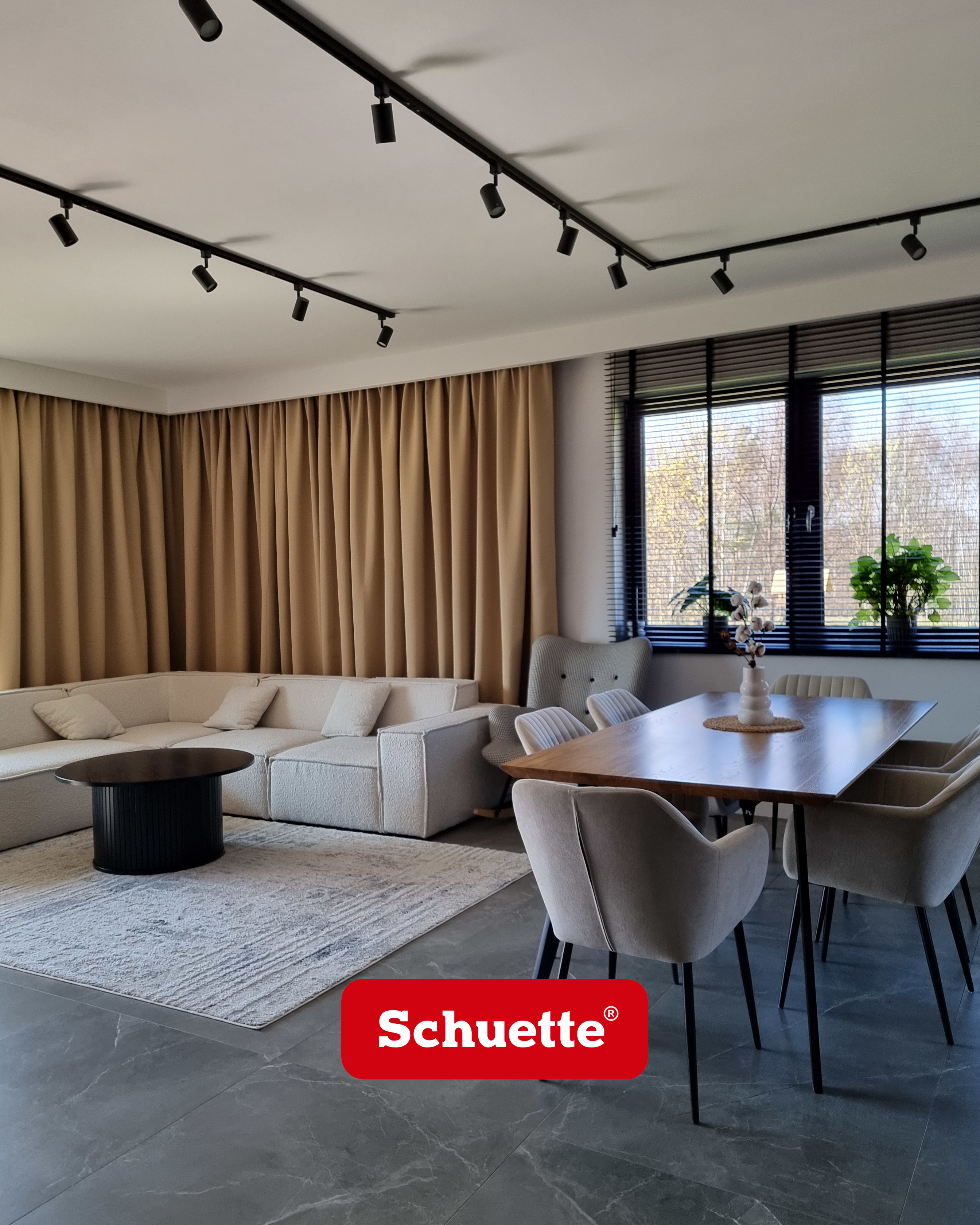 Otra opción es combinar cortinas y estores, pudiendo conseguir así una mayor protección, al igual que mayores posibilidades a la hora de regular la iluminación natural y la intimidad.
