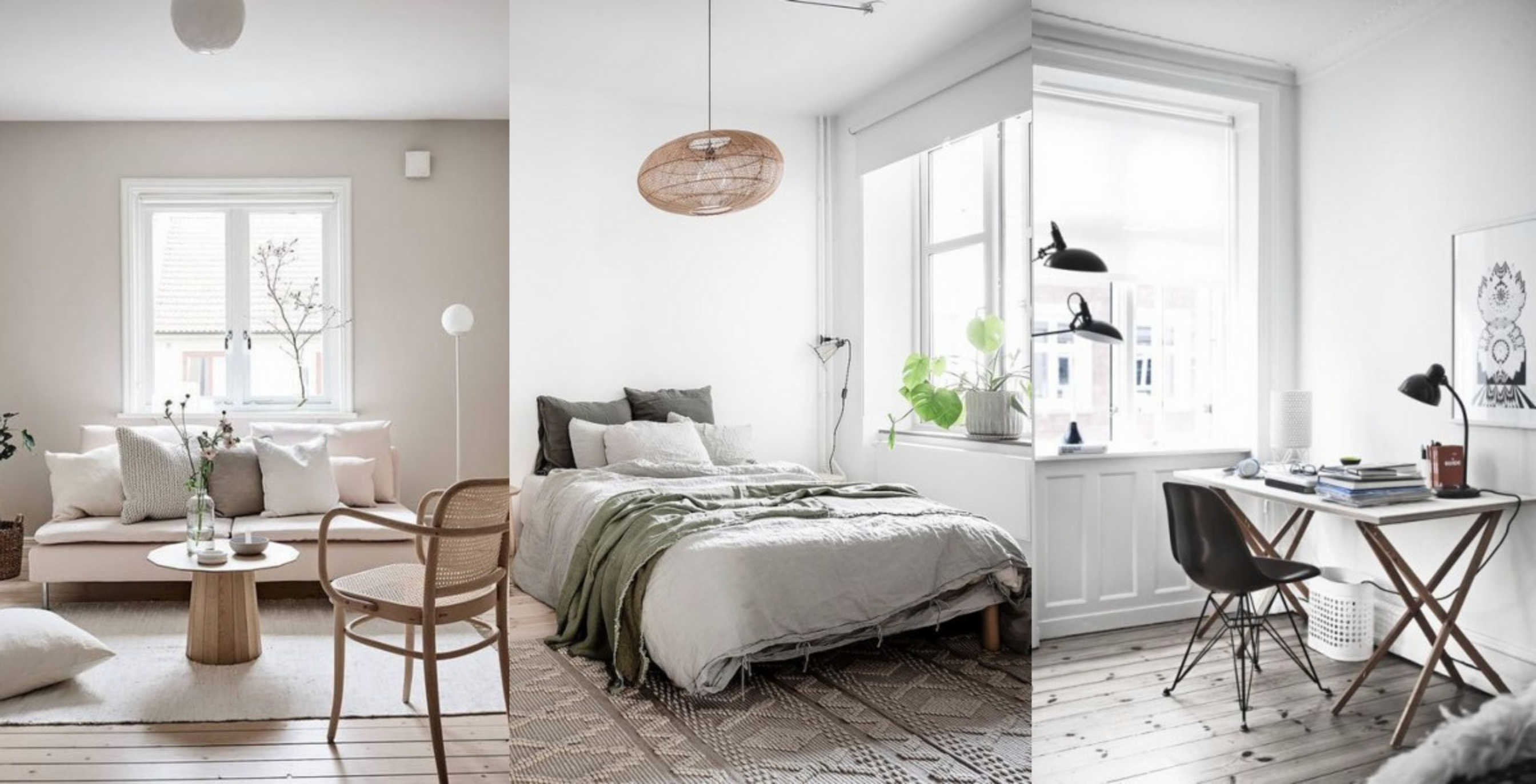 En general, se usan tonos neutros, para así crear un ambiente cromático uniforme. Esto funciona a modo de base, sobre la que luego se pueden añadir ciertos colores más intensos. De este modo, los colores principales son el beige, el marrón, el blanco y el gris, casi siempre en tonos claros.