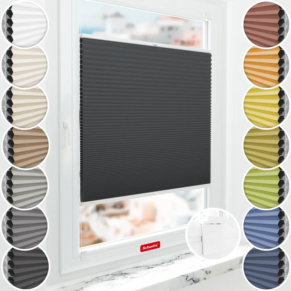 Schuette® Estor opaco termico celular a medida • Colección Blackout x Honey: Night Rider (Antracita) • Soporte adhesivo o con taladro 2in1 Suprafix "Letsbond" Transparente • Color del prefil: Blanco