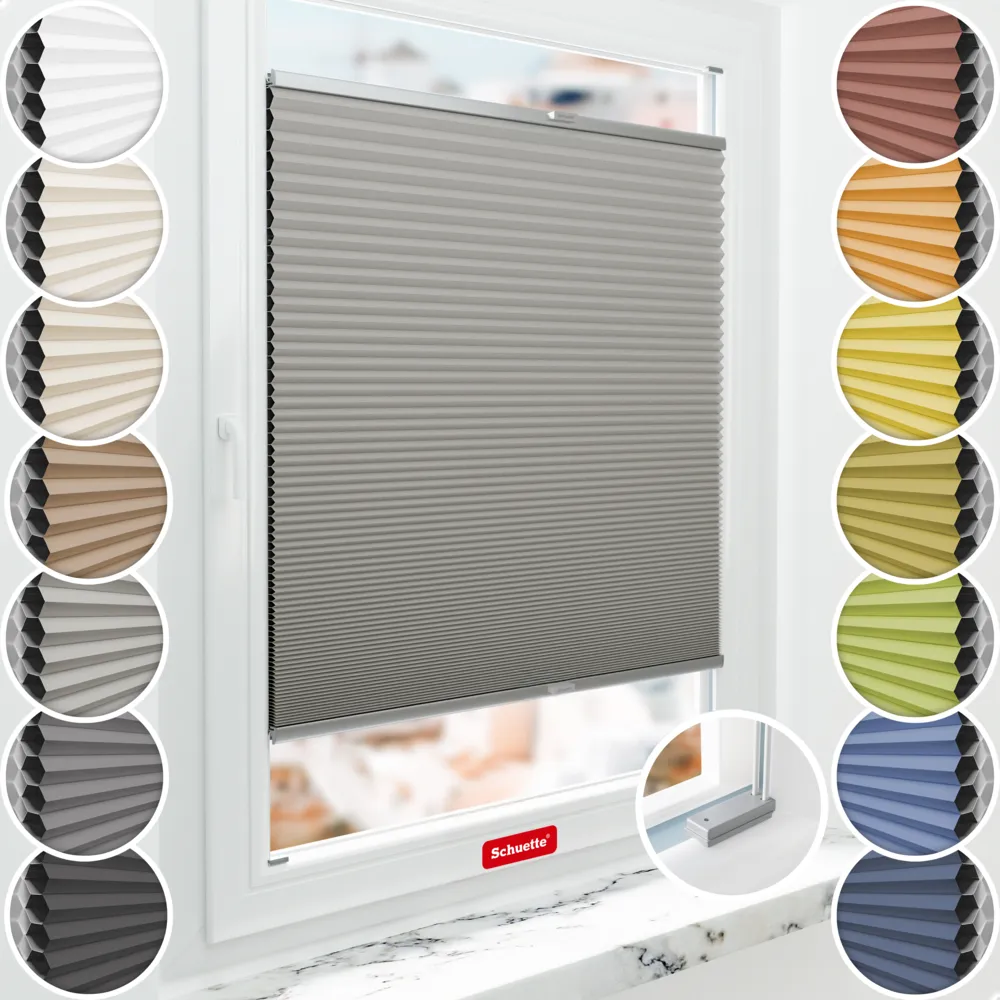 Schuette® Estor opaco termico celular a medida • Colección Blackout x Honey: Silver Mist (Gris) • Soporte de fijación Suprafix "Para atornillar" • Color del prefil: Plata
