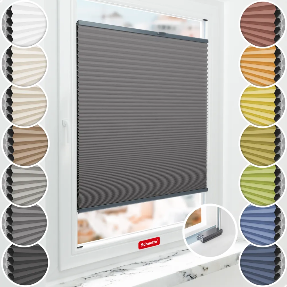 Schuette® Estor opaco termico celular a medida • Colección Blackout x Honey: Twilight Tango (Gris) • Soporte de fijación Suprafix "Para atornillar" • Color del prefil: Antracita