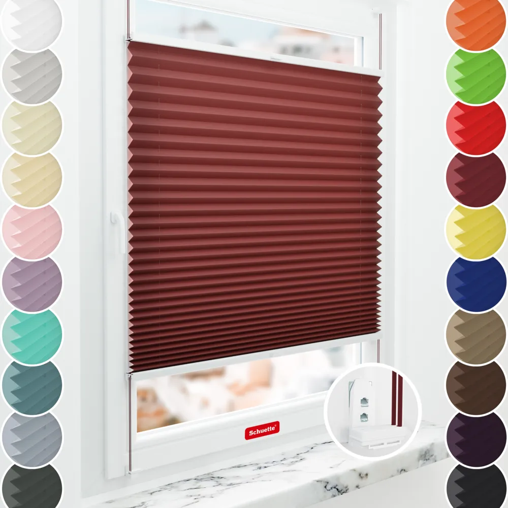 Los estores plisados Schuette® sin taladrar Para pegar combinan diseño y funcionalidad y aportan así a sus estancias un ambiente acogedor y acogedor. Ofrecen privacidad y no solo protegen de la luz no deseada, sino que también son un excelente elemento decorativo para sus ventanas.