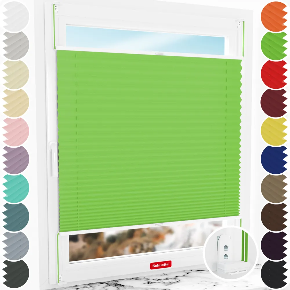 Schuette® store plissé avec perçage sur mesure • Collection Thermo • Suprafix support de fixation « Double 2en1 » • Leaf Joy (Vert) • Couleur du profil: Blanc