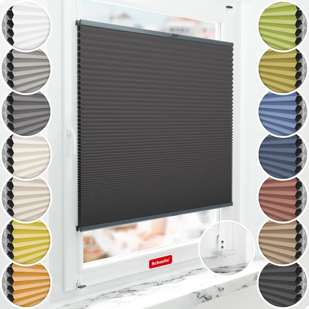 Schuette® store plissé occultant en nid d’abeille avec perçage sur mesure • Blackout x Honey Collection: Starry Night (Noir) • Suprafix Support de fixation « Double 2en1 » • Couleur du profil: Anthracite
