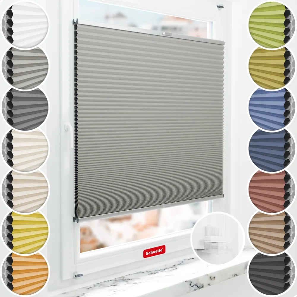 Schuette® store plissé occultant en nid d'abeille sans perçage sur mesure • Suprafix support de fixation « Incognito X » • Blackout x Honey Collection: Silver Mist (Gris) • Couleur du profil: Argent