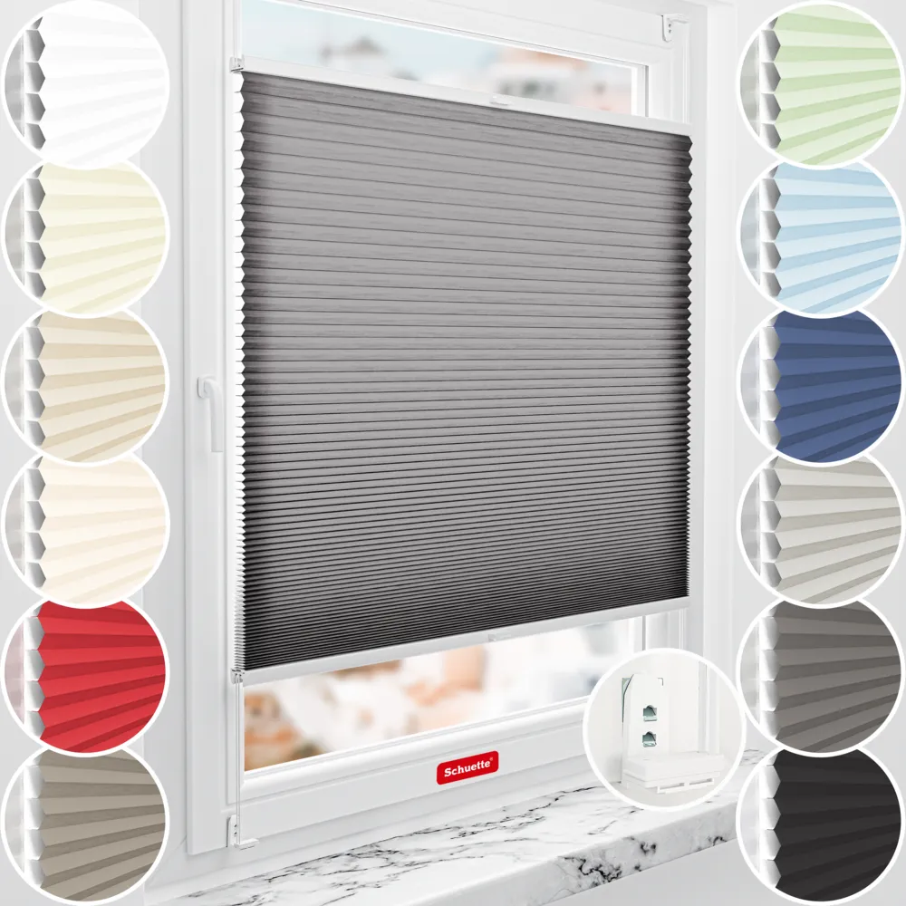 Schuette® store plissé thermique en nid d’abeille sans perçage sur mesure • Suprafix Support de fixation « Double 2en1 » • Thermo X Honey Collection: Midnight Snack (Noir) • Couleur du profil: Blanc