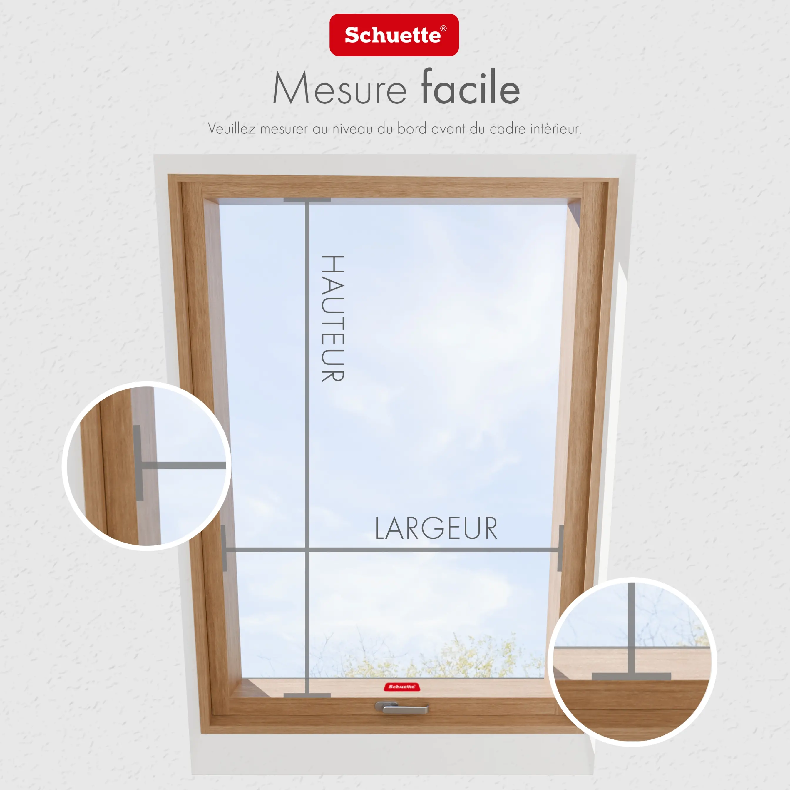 - Le store plissé pour fenêtre de toit Schuette® se compose d'un store plissé réglable en continu (Up&Down-haut et bas) et de deux profilés stables blancs en aluminium, fabriqués sur mesure pour votre fenêtre de toit. Les deux profilés en aluminium sont vissés sur les côtés intérieurs du cadre de la fenêtre et assurent une finition soignée de la fenêtre de toit. Les profilés latéraux cachent en outre la fente de lumière entre le store plissé et le cadre de la fenêtre et servent de guide au store plissé afin d'éviter un affaissement excessif du store plissé, même en cas d'angle d'inclinaison élevé de la fenêtre.