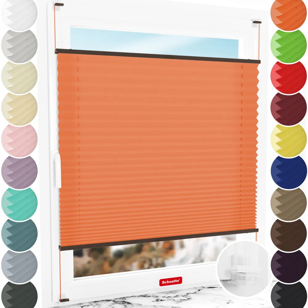 Schuette® Stores plissés sur mesure sans perçage • Collection Premium: Sunset (Orange) • Suprafix Fixation « Incognito X » • Couleur du profil: Noyer