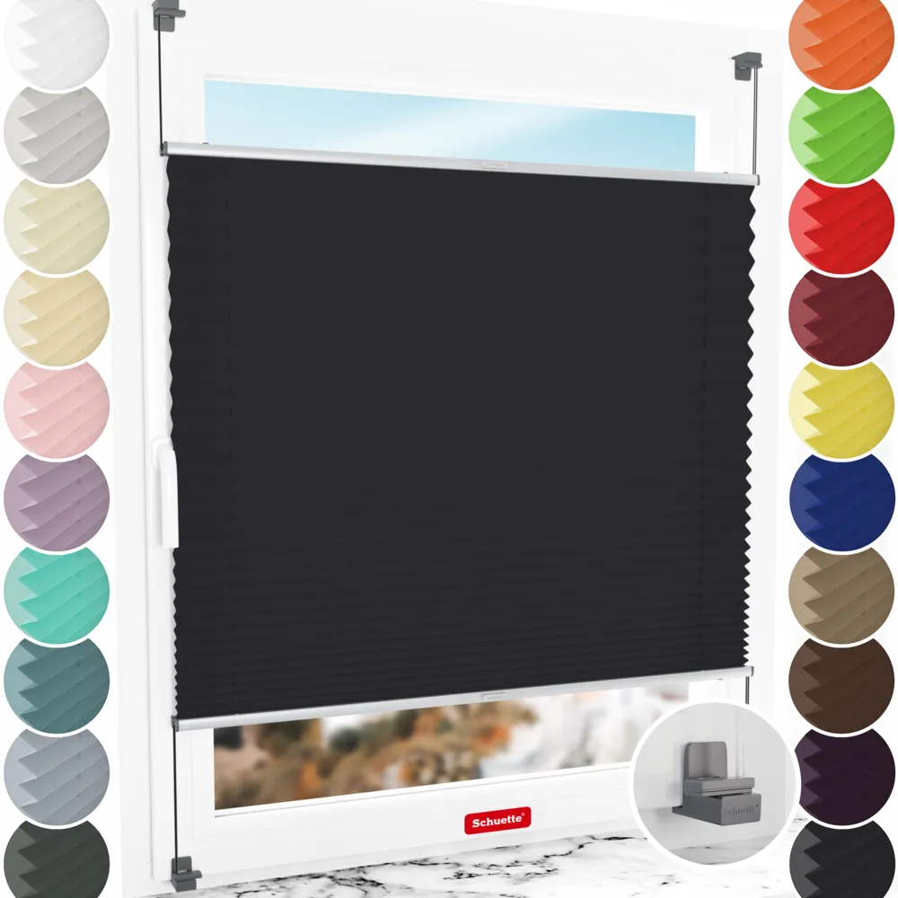Schuette® Stores plissés sur mesure • Suprafix Fixation sans perçage « X » • Collection Premium • Silesian Coal (Noir) • Couleur du profil: Argent