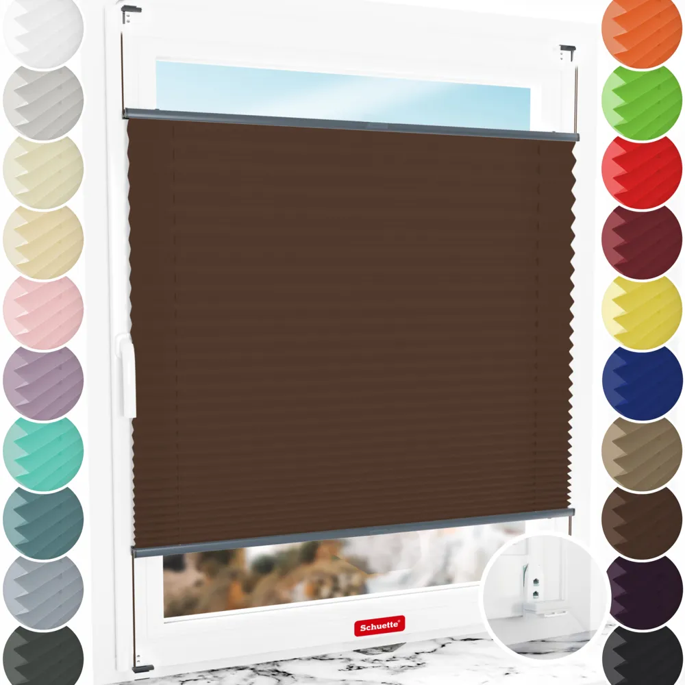 Schuette® Tenda plissettata su misura senza foratura • Collezione Premium: Hot Chocolate (Marrone scuro) • Suprafix Supporti “Double 2in1” • Colore del profilo: Antracite