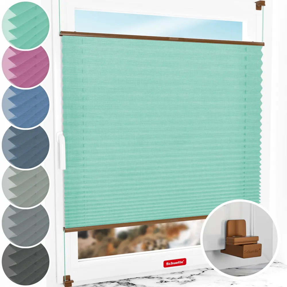 Schuette® plisségordijn zonder boren op maat • Melange collectie: Mint Ice Cream (Groen) • Suprafix klembeugel "X" • Profielkleur: Eik