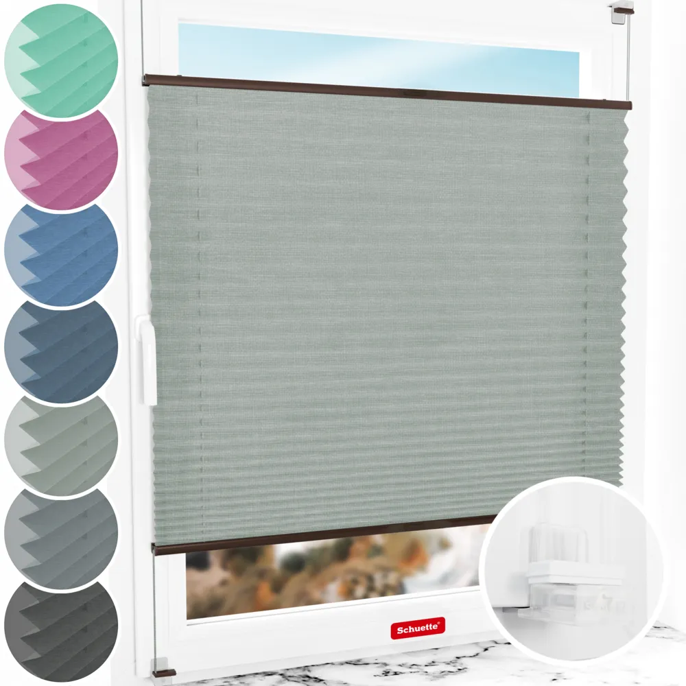 - Kenmerken Schuette® plisségordijnen zonder boren: Traploos verstelbaar (Up&Down), dubbel gespannen (GEEN slingeren), speciale aluminium profielen (GEEN! buigen/breken), zoveel mogelijk volledig gemonteerd (GEEN! inrijgen van het plissékoord / GEEN tijdrovende montage van veel losse onderdelen)
