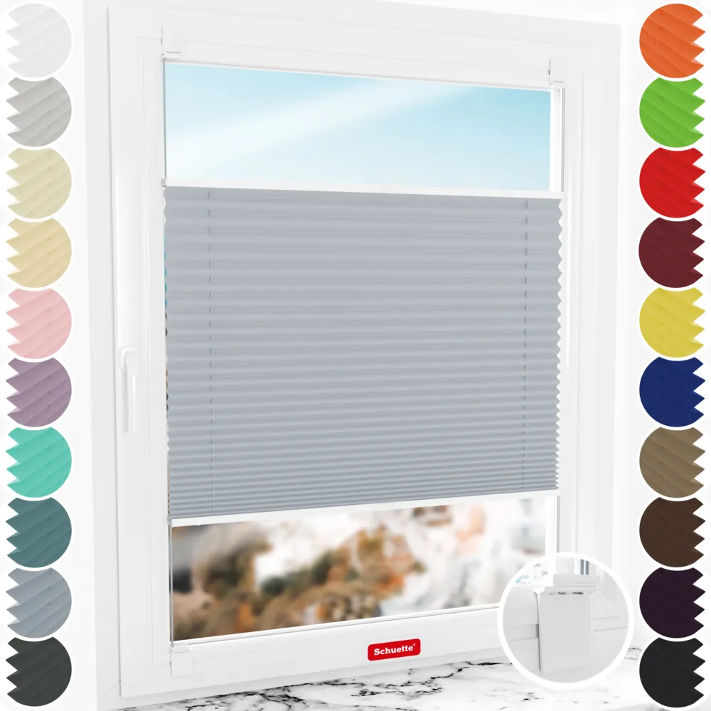 - Kenmerken Schuette® plisségordijnen zonder boren: Traploos verstelbaar (Up&Down), dubbel gespannen (GEEN slingeren), speciale aluminium profielen (GEEN! buigen/breken), zoveel mogelijk volledig gemonteerd (GEEN! inrijgen van het plissékoord / GEEN tijdrovende montage van veel losse onderdelen)