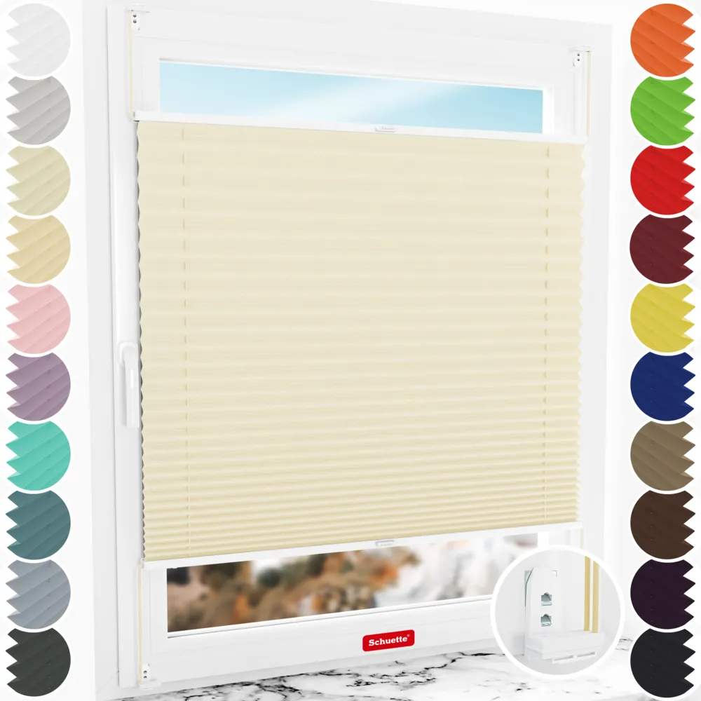 Schuette® Plisségordijnen met boren op maat • Thermo collectie: Milk Tea (Beige) • Suprafix "Double 2in1" schroef- & klembevestiging • Profielkleur: Wit