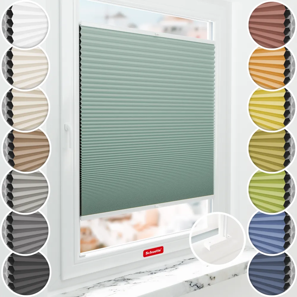 Schuette® verduisterend honingraat plisségordijn met boren op maat • Blackout x Honey collectie: Wicked Emerald (Bleekgroen) • Suprafix beugels "Met boren" • Profielkleur: Wit
