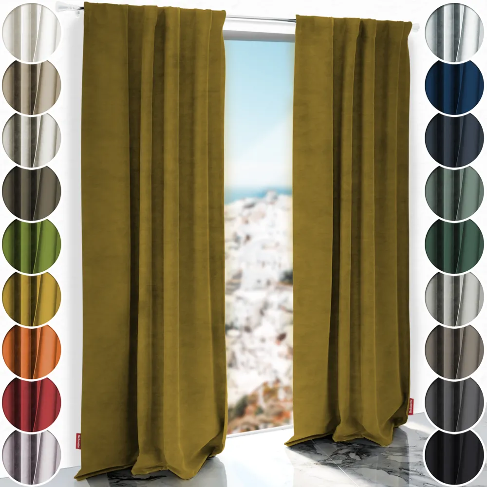 - Kleuren om verliefd op te worden: De Schuette® Millennium Velvet stoffencollectie bevat 20 prachtige, diepe en rijke kleuren om verliefd op te worden. Onze geraffineerde kleurtinten in combinatie met de luxueuze uitstraling van de fluwelen stof en de warme glans zullen elke kamer opfleuren. De stof is zacht, dik en heeft een prachtige glans. Hij valt heel zacht en kreukvrij in gelijkmatige plooien en creëert een elegante sfeer.