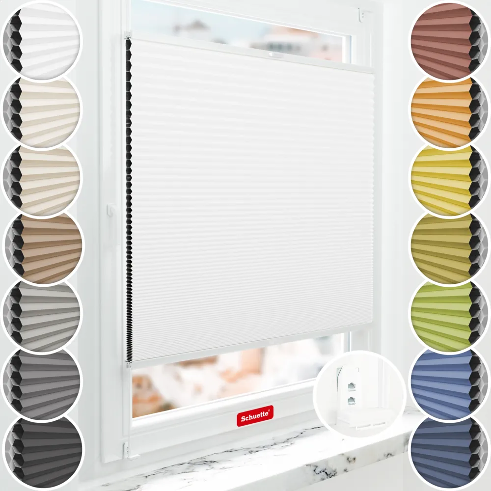 Schuette® Plissegardin med bikakestruktur mørkleggingsplissegardin med boring etter mål • Blackout x Honey kolleksjon: Moonlight (Hvit) • Suprafix "Double 2in1" skrue- og klemholder • Profilfarge: Hvit