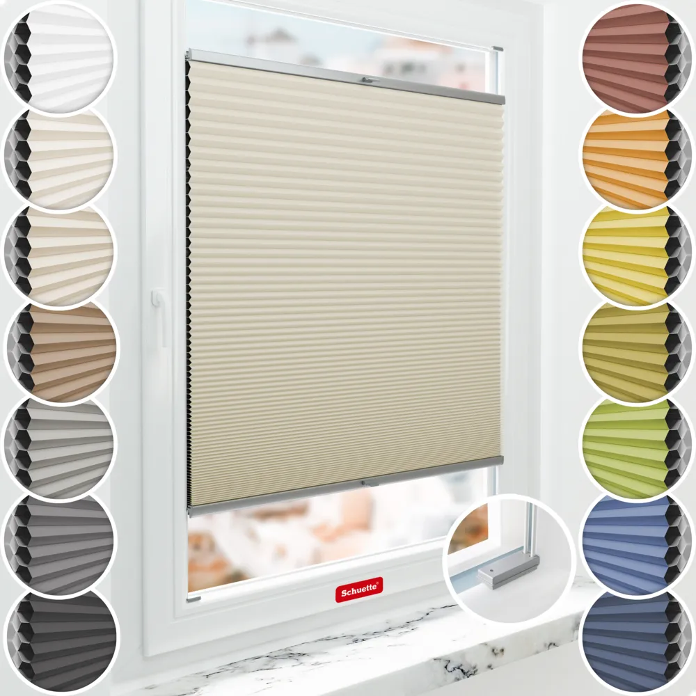 Schuette® Plissegardin med bikakestruktur mørkleggingsplissegardin med boring etter mål • Blackout x Honey kolleksjon: Belgian Waffle (Krem) • Suprafix Brakett "Med boring" • Profilfarge: Sølv