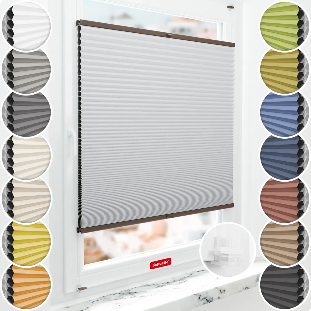 Schuette® Plissegardin med bikakestruktur mørkleggingsplissegardin uten boring etter mål • Blackout x Honey kolleksjon: Skyfall (Lys grå) • Suprafix klemfeste "Incognito X" • Profilfarge: Valnøtt
