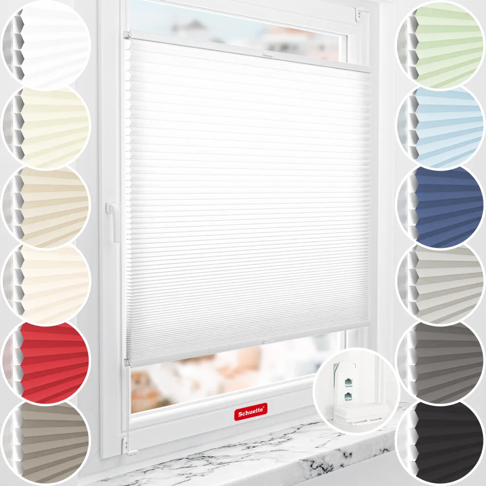 Schuette® Plissegardin med bikakestruktur termoplissegardin med boring etter mål • Thermo x Honey kolleksjon: Coconut Kiss (Hvit) • Suprafix "Double 2in1" skrue- og klemholder • Profilfarge: Hvit