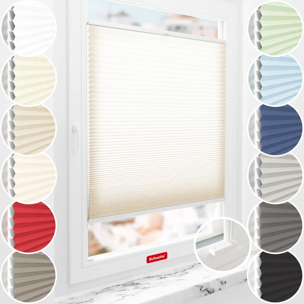 Ja, det går. Hver Schuette® plissegardin for boring leveres med fire ulike festeplater som kan kompensere for ulike vinkler på glasslister og til og med avrundinger. Glasslisten bør imidlertid være minst 10 mm dyp, slik at det er nok plass mellom glassruten og stoffet for luftsirkulasjon og til selve festet. Er glasslisten mindre enn 10 mm dyp, kan vinkelmontering eller klemme- og limfester være aktuelle.