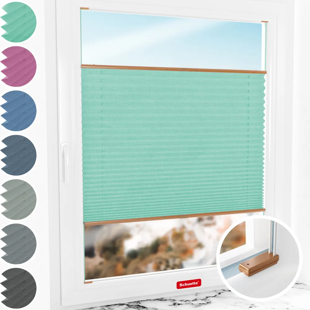 Schuette® Plissegardin med boring etter mål • Melange kolleksjon: Mint Ice Cream (Grønn) • Suprafix Brakett "Med boring" • Profilfarge: Eik