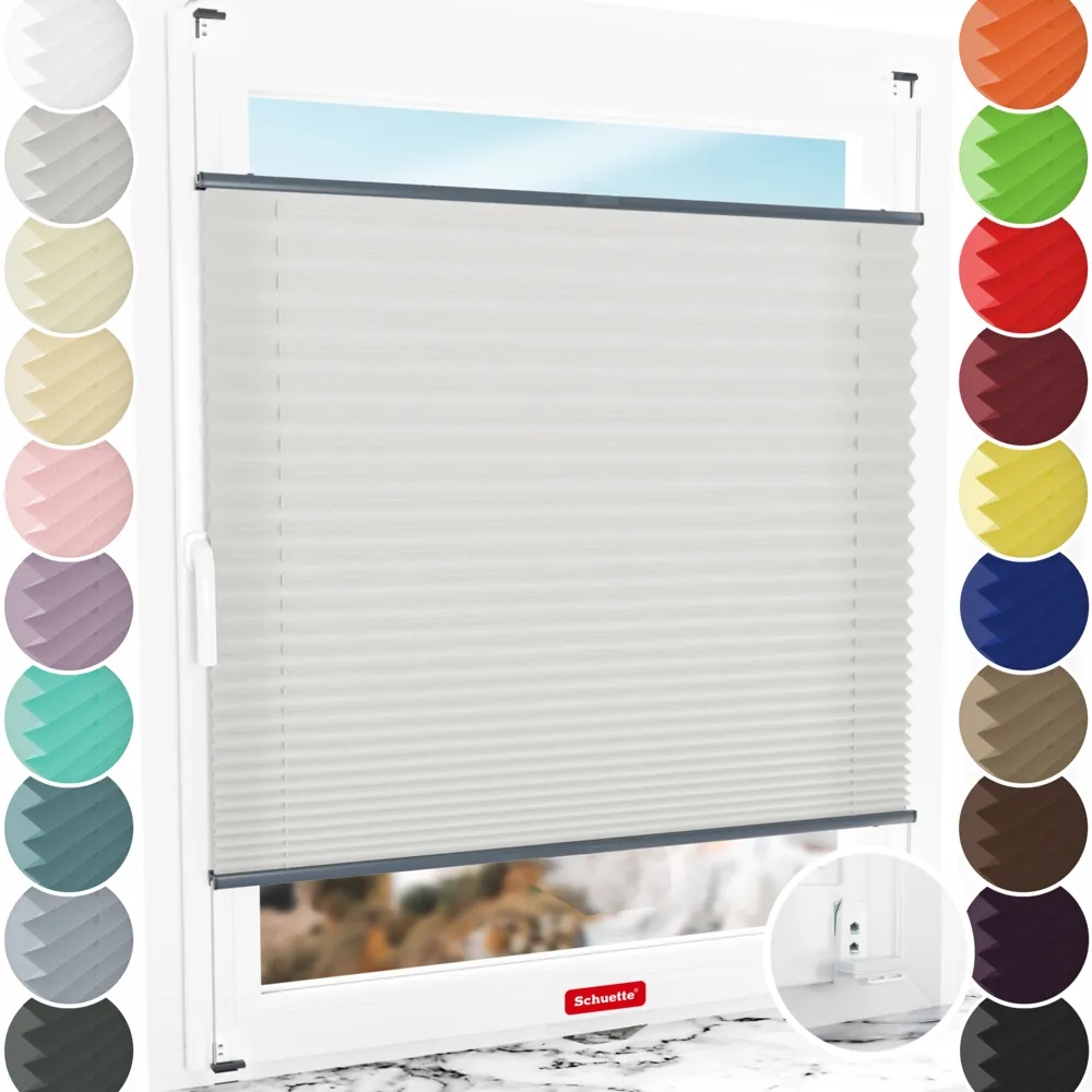 Schuette® Plissegardin med boring etter mål • Premium kolleksjon: A Way Home (Sølv) • Suprafix "Double 2in1" skrue- og klemholder • Profilfarge: Antracitt