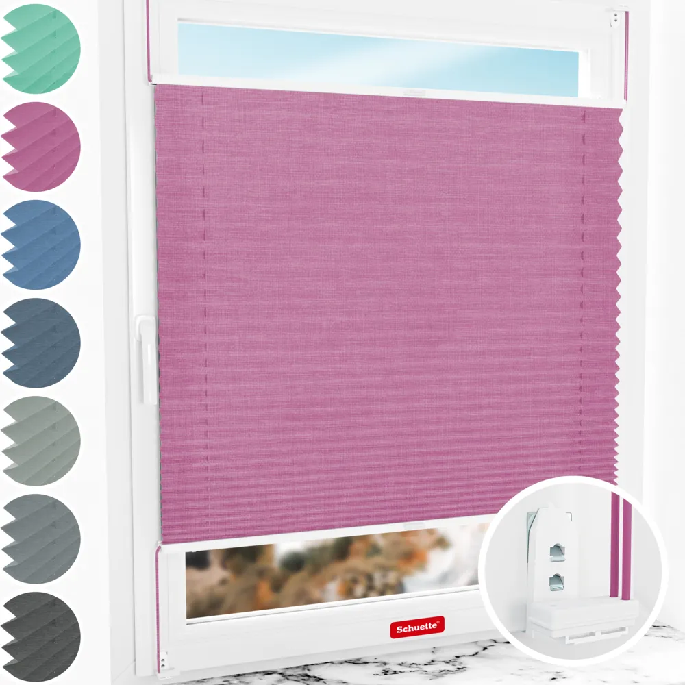 Schuette® Plissee mit Bohren nach Maß • Melange Kollektion: Magic Pink (Rosa) • Suprafix "Double 2in1" Schraub- & Klemmhalter • Profilfarbe: Weiß