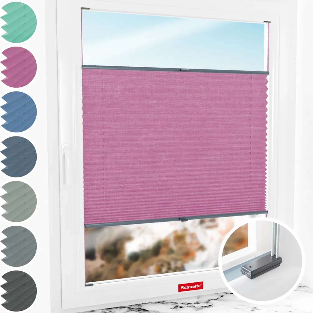Schuette® Plissee mit Bohren nach Maß • Melange Kollektion: Magic Pink (Rosa) • Suprafix Halterungen “Mit Bohren” • Profilfarbe: Anthrazit