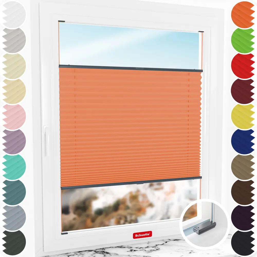 Schuette® Plissee mit Bohren nach Maß • Thermo Kollektion: Peach (Orange) • Suprafix Halterungen “Mit Bohren” • Profilfarbe: Anthrazit