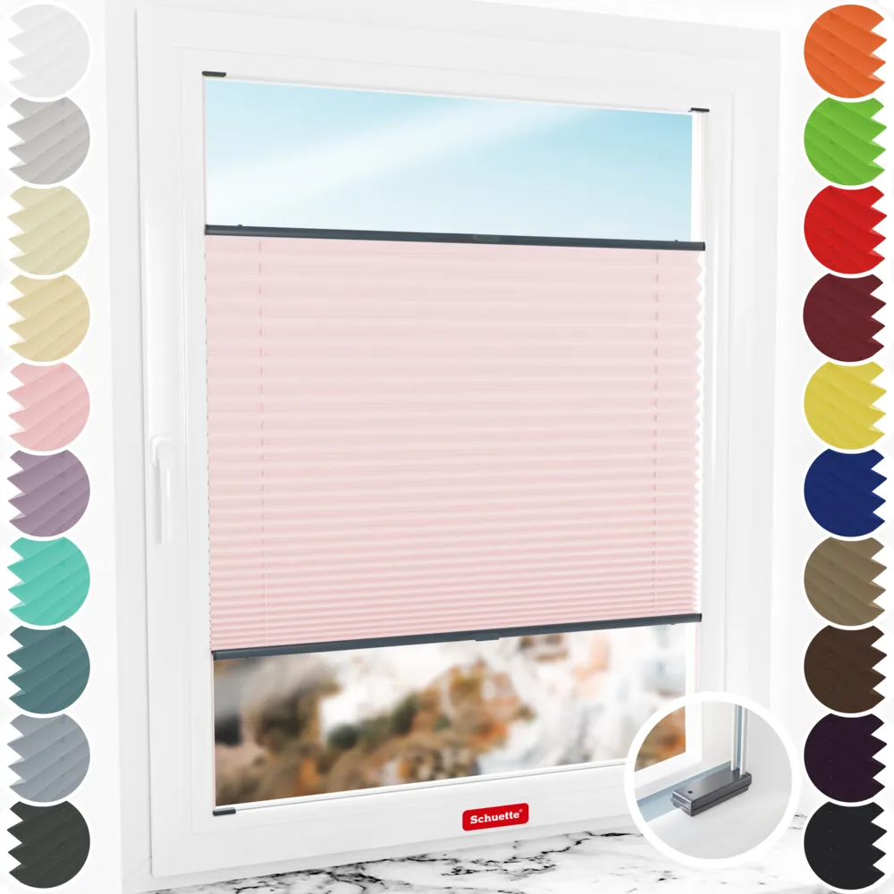 Schuette® Plissee mit Bohren nach Maß • Thermo Kollektion: Rosewater (Rosa) • Suprafix Halterungen “Mit Bohren” • Profilfarbe: Anthrazit