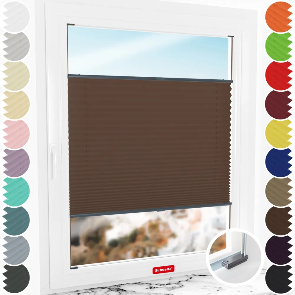 Schuette® Plissee mit Bohren nach Maß • Thermo Kollektion: Toffee (Dunkelbraun) • Suprafix Halterungen “Mit Bohren” • Profilfarbe: Anthrazit