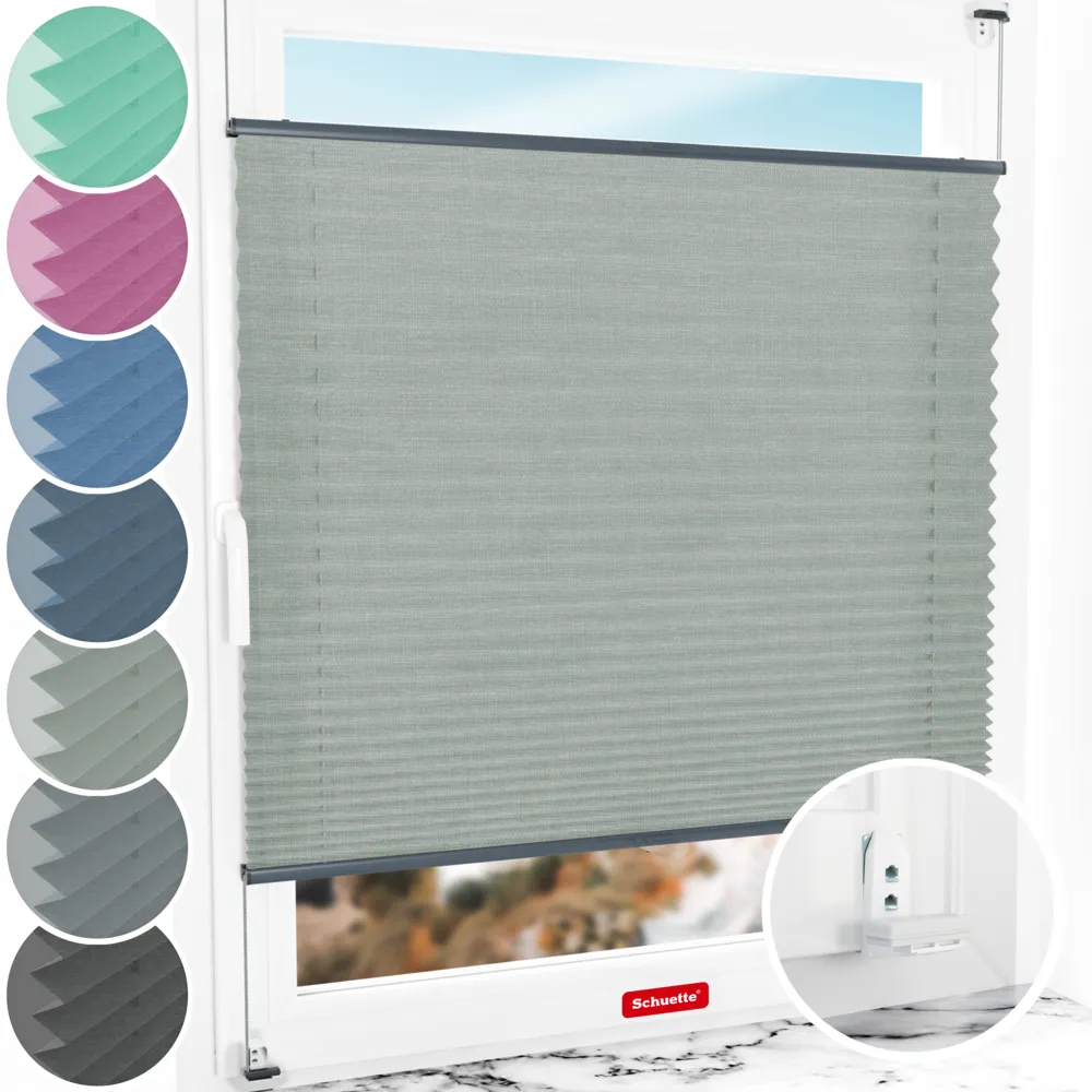 - Eigenschaften Schuette® Plissee ohne Bohren: Stufenlos verstellbar (Up&Down), doppelt verspannt (KEIN Pendeln), spezielle Aluminiumprofile (KEIN! Verbiegen/Brechen), soweit wie möglich fertig montiert (KEIN! Einfädeln der Plisseeschnur / KEIN! langwieriges Zusammenbauen von vielen Einzelteilen)