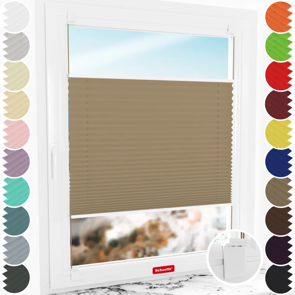 Schuette® Plissee ohne Bohren nach Maß • Premium Kollektion: Morning Coffee (Hellbraun) • Suprafix Klebe- & Schraubhalter 2in1 Set "Letsbond" • Profilfarbe: Anthrazit