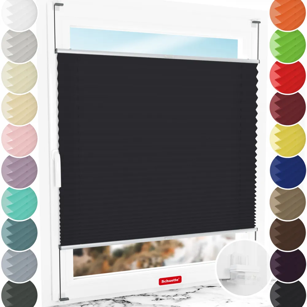 Schuette® Plissee zum Kleben nach Maß • Premium Kollektion: Silesian Coal (Schwarz) • Suprafix Klemmhalter “Incognito X" • Profilfarbe: Silber