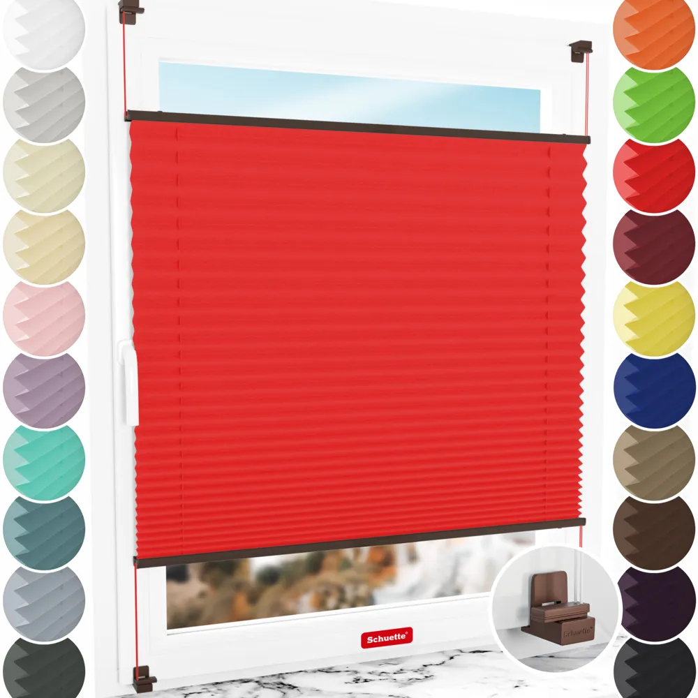 Schuette® Plissee ohne Bohren nach Maß • Thermo Kollektion: Cherry Charm (Rot) • Suprafix Klemmhalter "X" • Profilfarbe: Walnuss