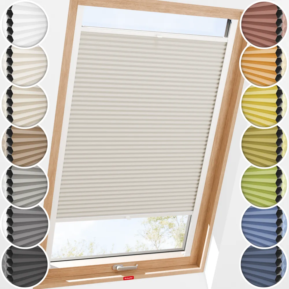 Schuette® Wabenplissee Dachfenster Verdunkelung mit Bohren nach Maß • Blackout x Honey: Belgian Waffle (Creme) • Profil: Silber