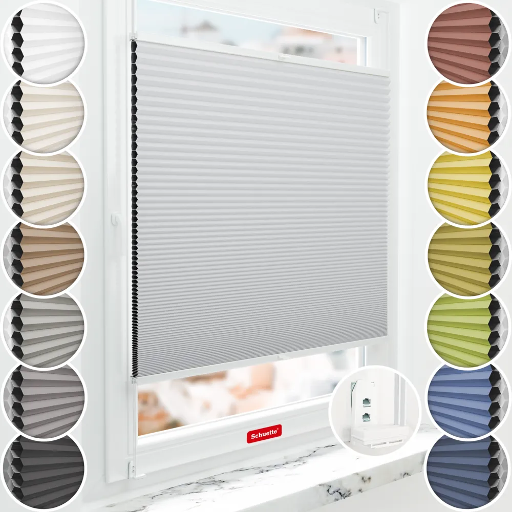 Schuette® Wabenplissee ohne Bohren nach Maß • Blackout x Honey: Skyfall (Hellgrau) • Suprafix Klemmhalter "Double 2in1" • Profil: Weiß