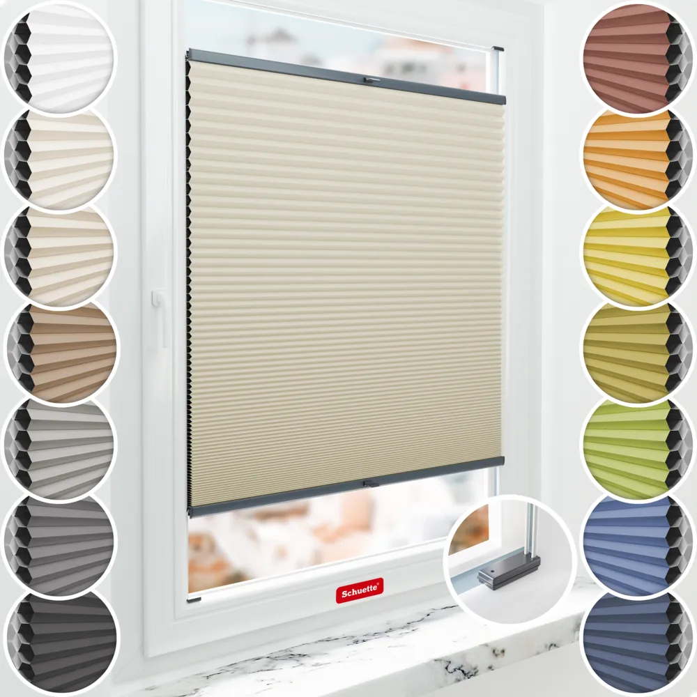 Schuette® Wabenplissee Verdunklungsplissee mit Bohren nach Maß • Blackout x Honey: Belgian Waffle (Creme) • Suprafix Halterungen "Mit Bohren" • Profil: Anthrazit