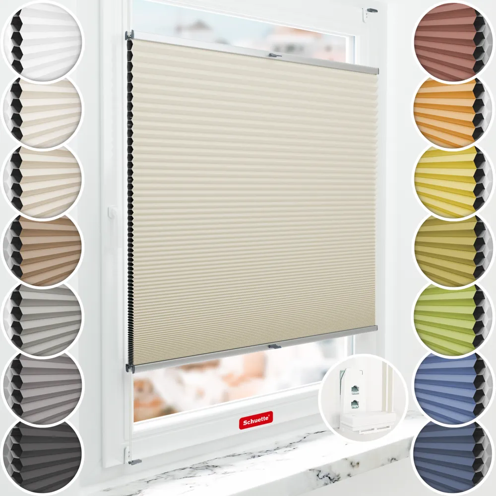 Schuette® Wabenplissee Verdunklungsplissee mit Bohren nach Maß • Blackout x Honey: Belgian Waffle (Creme) • Suprafix "Double 2in1" Schraub- & Klemmhalter • Profil: Silber
